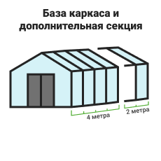 Длина базовой теплицы - 3,2 м., дверь-купе и две форточки в крыше.