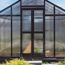 Длина базовой теплицы - 4,0 м. с двойной дверью-купе и двойной форточкой в крыше.